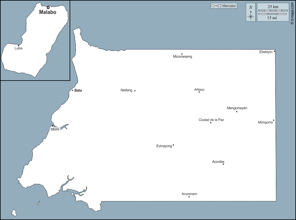 d-maps > África > Guiné Equatorial > contornos, principais cidades, nomes