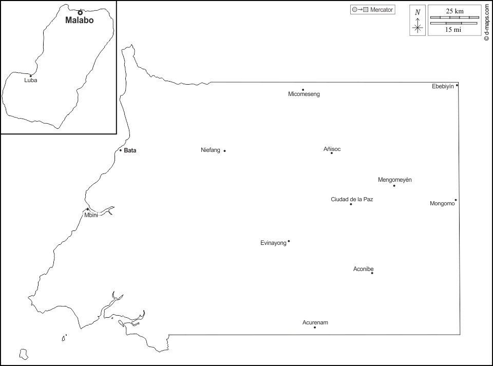 d-maps > África > Guiné Equatorial > contornos, principais cidades, nomes, branco