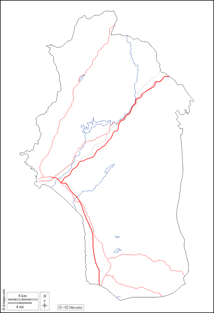 d-maps > Ásia > Siria > Lataquia > contornos, hidrografia, estradas, branco