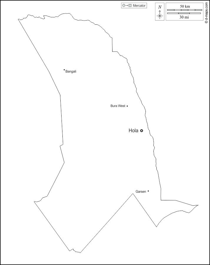 d-maps > África > Quénia > Condado do Rio Tana > contornos, principais cidades, nomes, branco