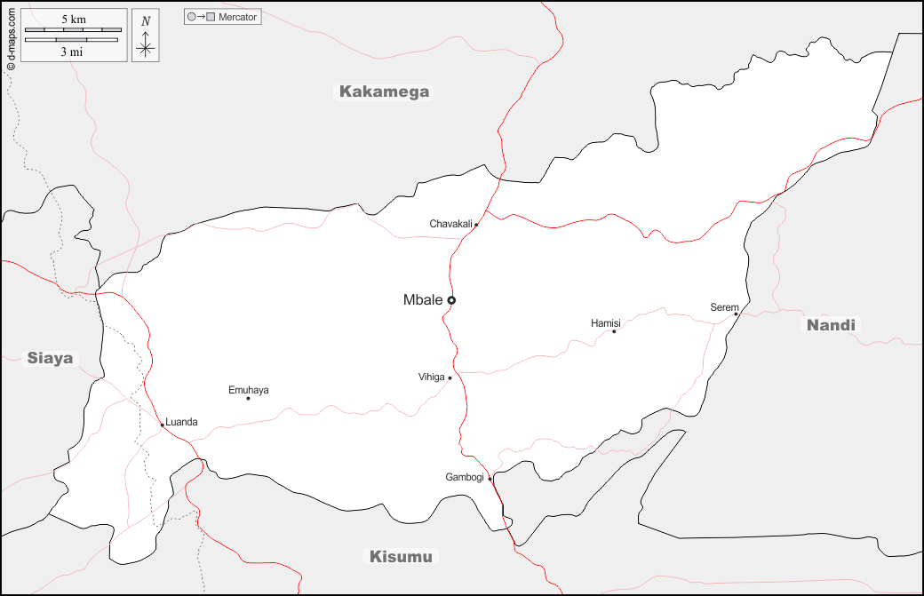 d-maps > África > Quénia > Condado de Vihiga > fronteiras, principais cidades, estradas, nomes
