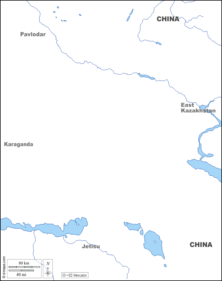 d-maps > Ásia > Cazaquistão > Região de Abai > costas, hidrografia