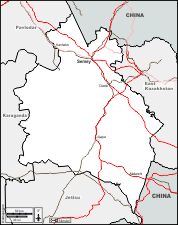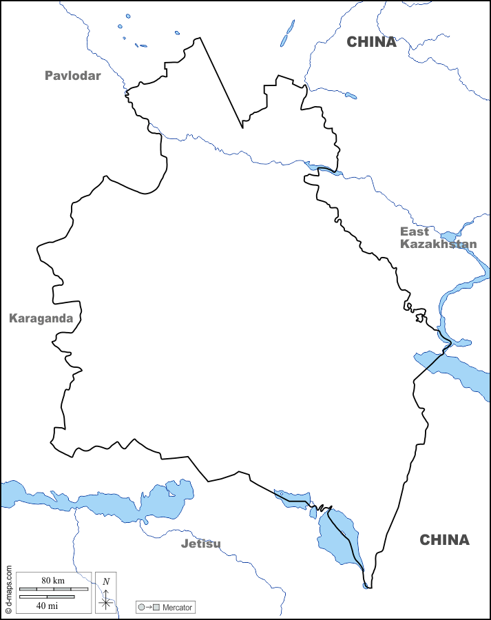 d-maps > Ásia > Cazaquistão > Região de Abai > costas, limites, hidrografia