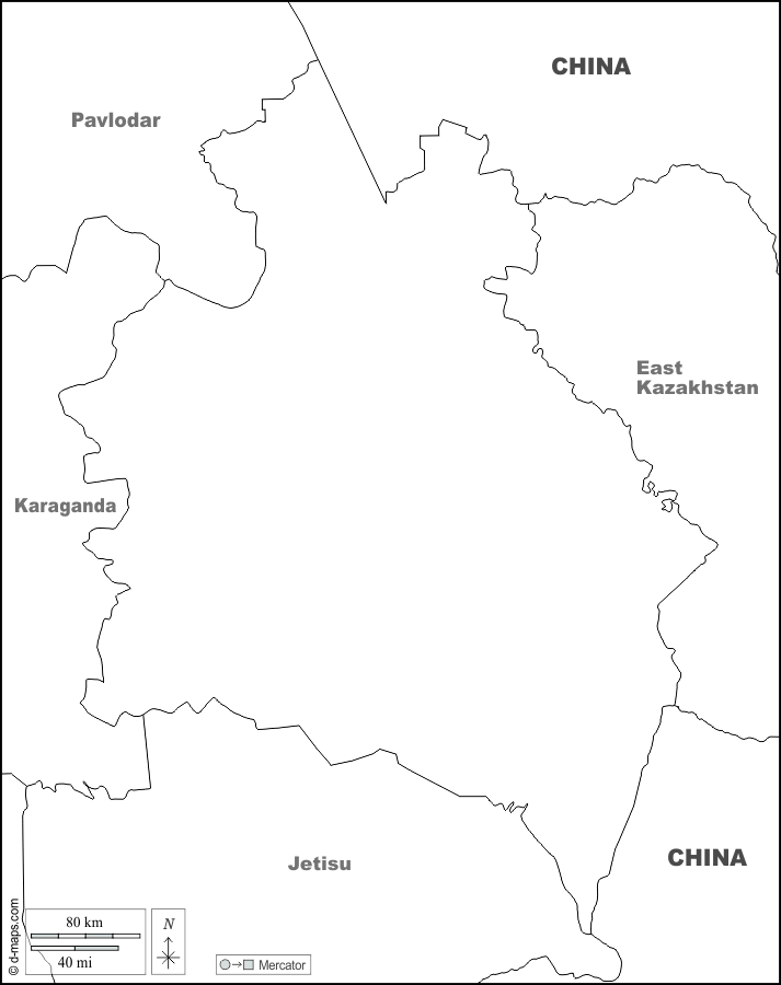d-maps > Ásia > Cazaquistão > Região de Abai > fronteiras, nomes, branco