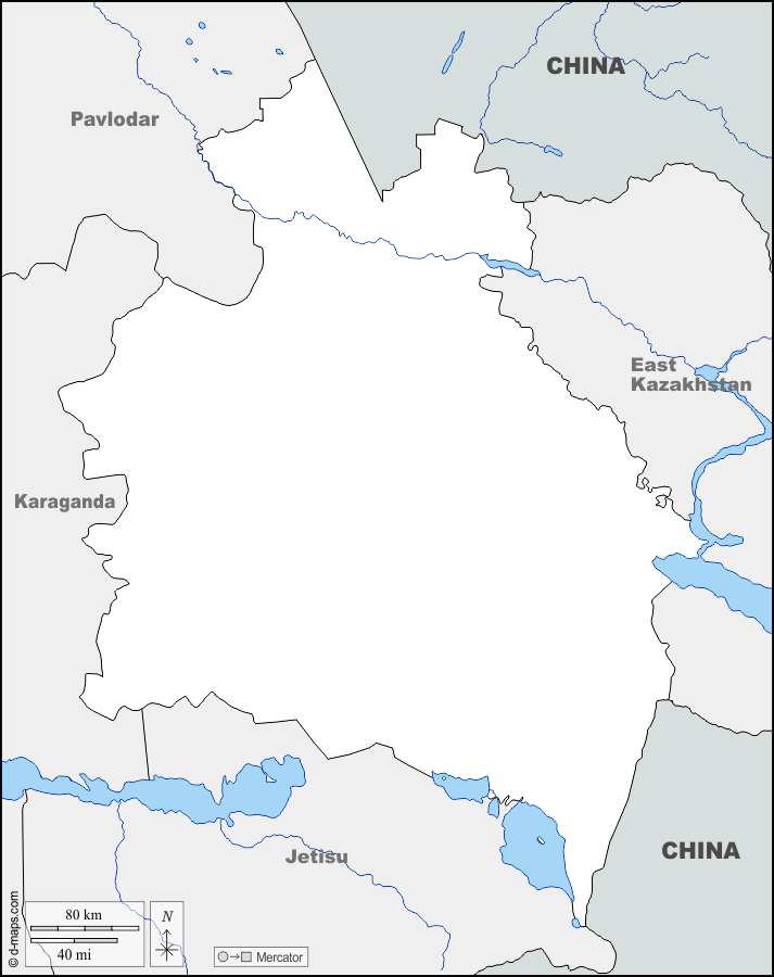 d-maps > Ásia > Cazaquistão > Região de Abai > fronteiras, hidrografia