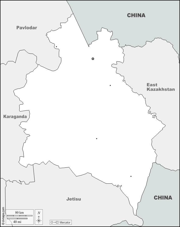 d-maps > Ásia > Cazaquistão > Região de Abai > fronteiras, principais cidades