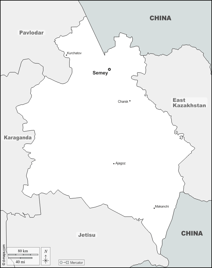 d-maps > Ásia > Cazaquistão > Região de Abai > fronteiras, principais cidades, nomes