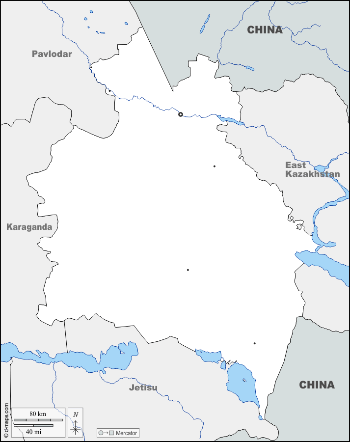 d-maps > Ásia > Cazaquistão > Região de Abai > fronteiras, hidrografia, principais cidades