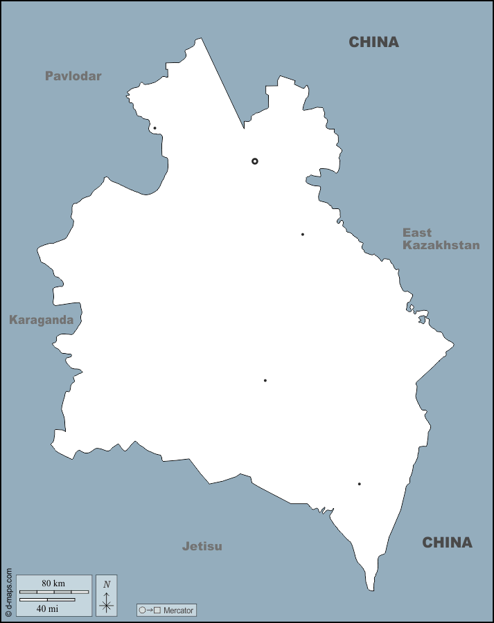 d-maps > Ásia > Cazaquistão > Região de Abai > contornos, principais cidades