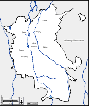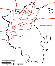 d-maps > Ásia > Cazaquistão > Almaty Cidade > fronteiras, hidrografia, estradas, branco