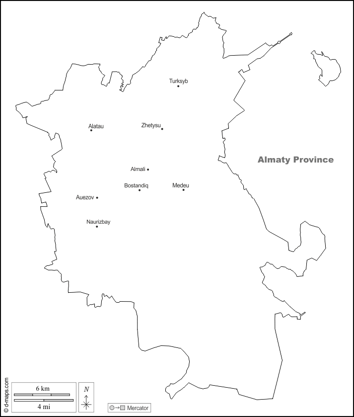 d-maps > Ásia > Cazaquistão > Almaty Cidade > fronteiras, principais cidades, nomes, branco