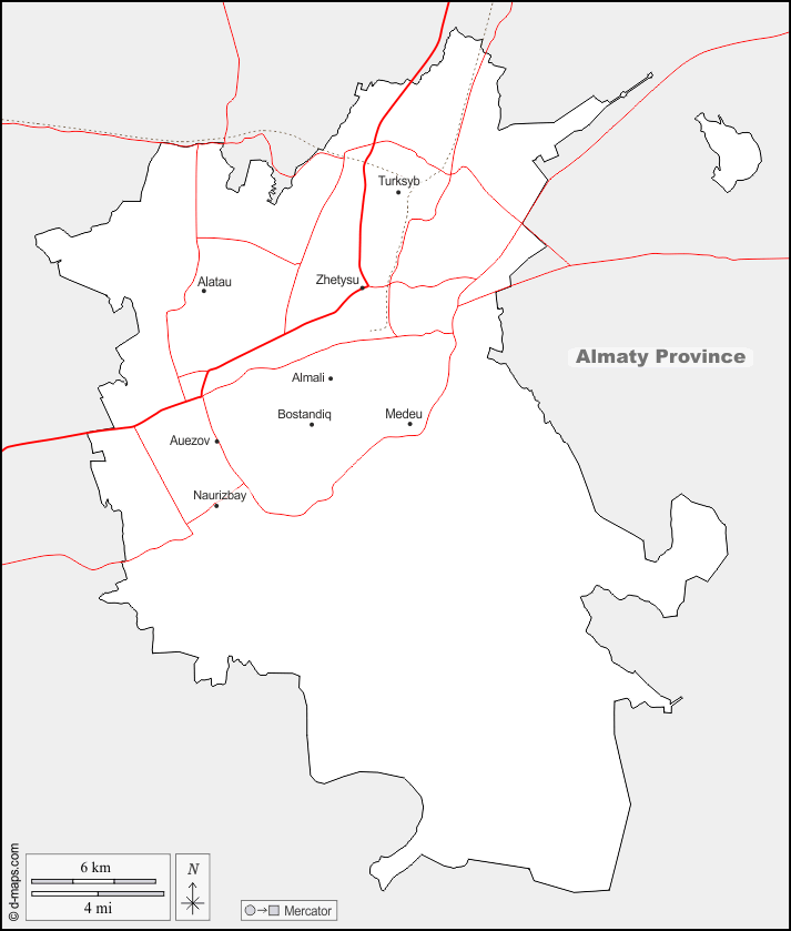 d-maps > Ásia > Cazaquistão > Almaty Cidade > fronteiras, principais cidades, estradas, nomes
