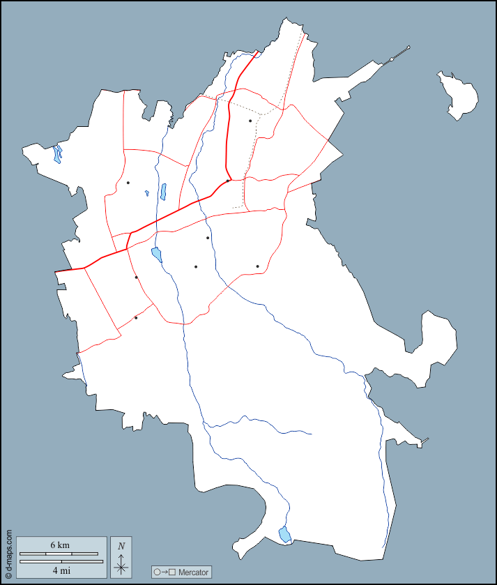 d-maps > Ásia > Cazaquistão > Almaty Cidade > contornos, hidrografia, principais cidades, estradas