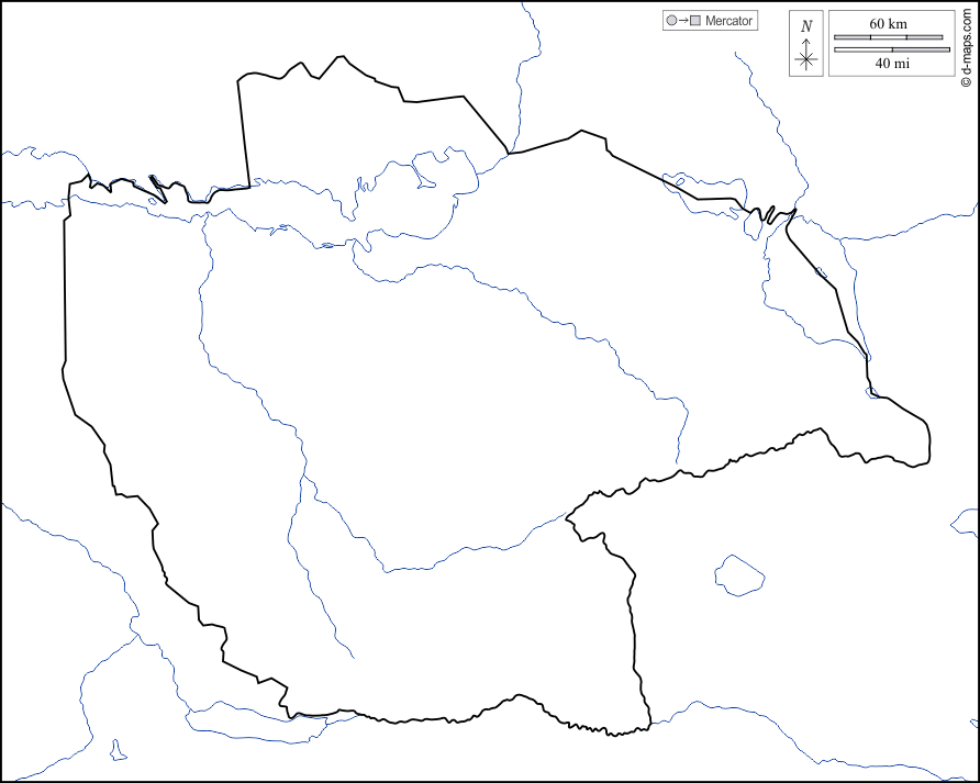 d-maps > Ásia > Cazaquistão > Região de Jetisu > costas, limites, hidrografia, branco
