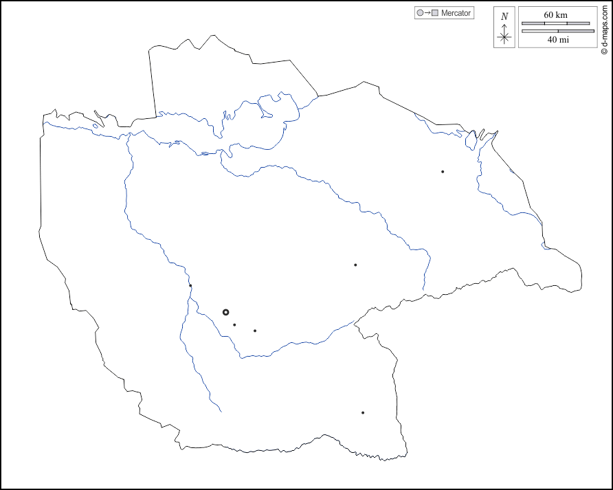 d-maps > Ásia > Cazaquistão > Região de Jetisu > contornos, hidrografia, principais cidades, branco
