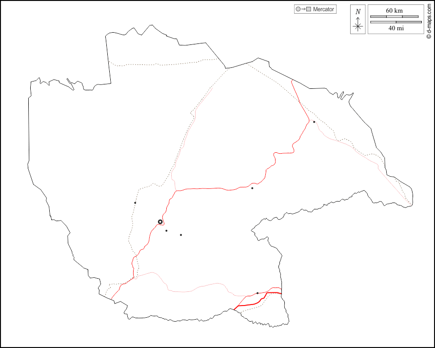 d-maps > Ásia > Cazaquistão > Região de Jetisu > contornos, principais cidades, estradas, branco