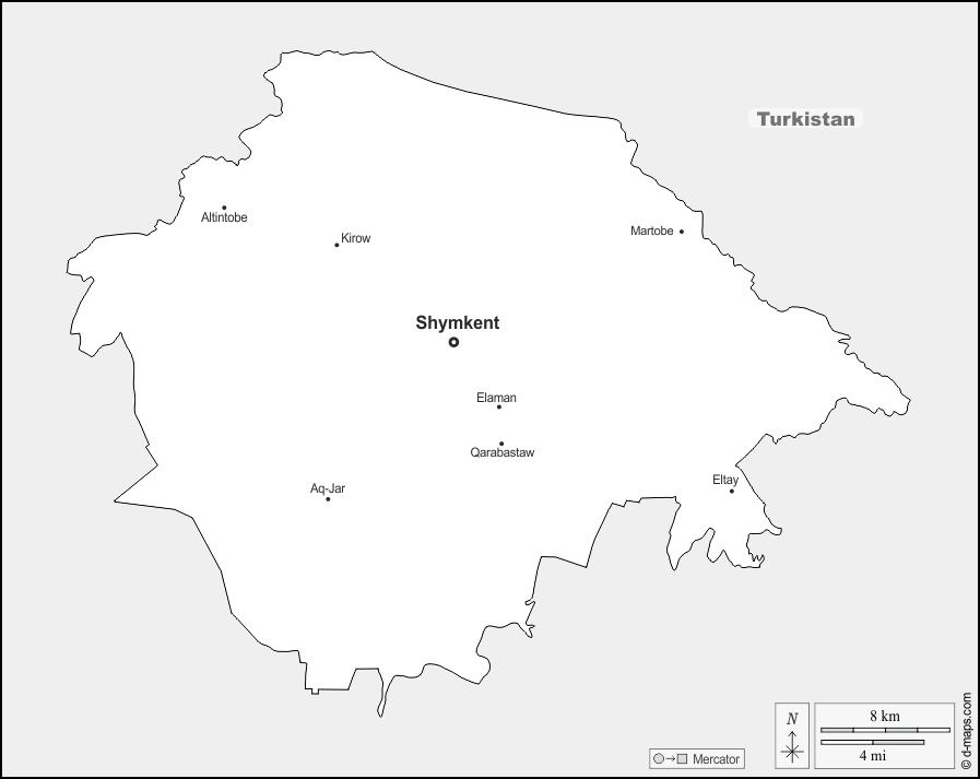 d-maps > Ásia > Cazaquistão > Shymkent > fronteiras, principais cidades, nomes