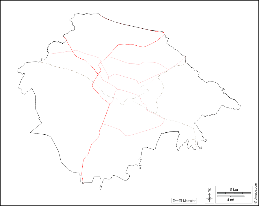 d-maps > Ásia > Cazaquistão > Shymkent > contornos, estradas, branco