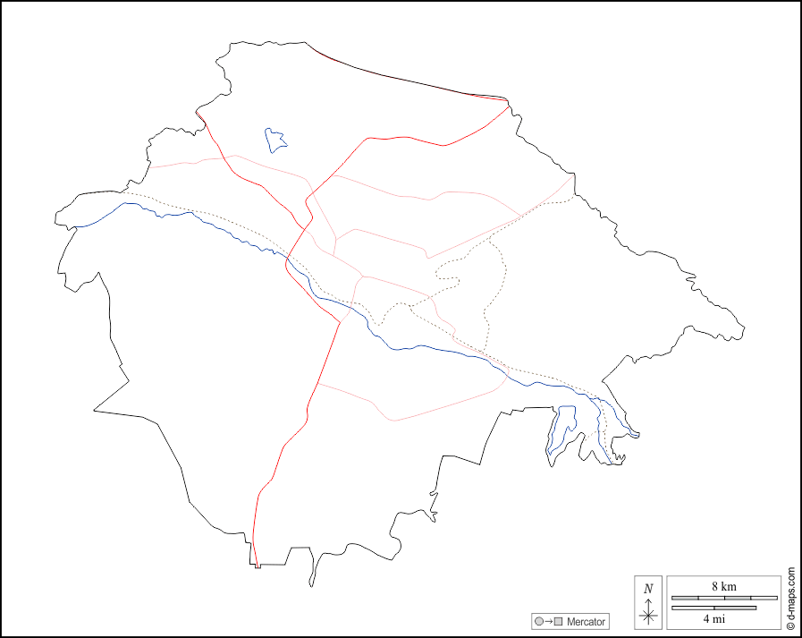 d-maps > Ásia > Cazaquistão > Shymkent > contornos, hidrografia, estradas, branco