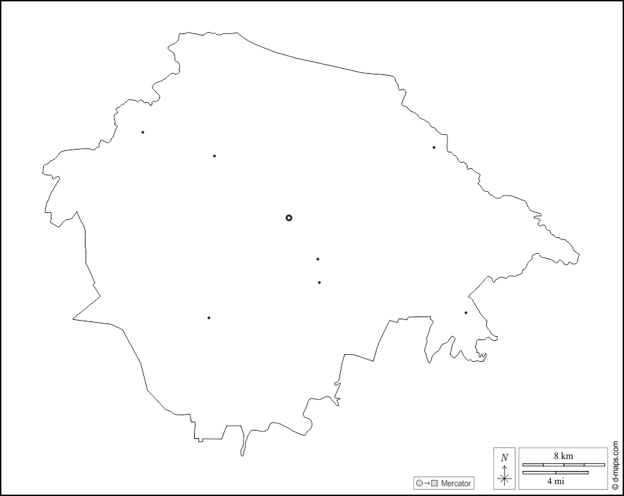 d-maps > Ásia > Cazaquistão > Shymkent > contornos, principais cidades, branco