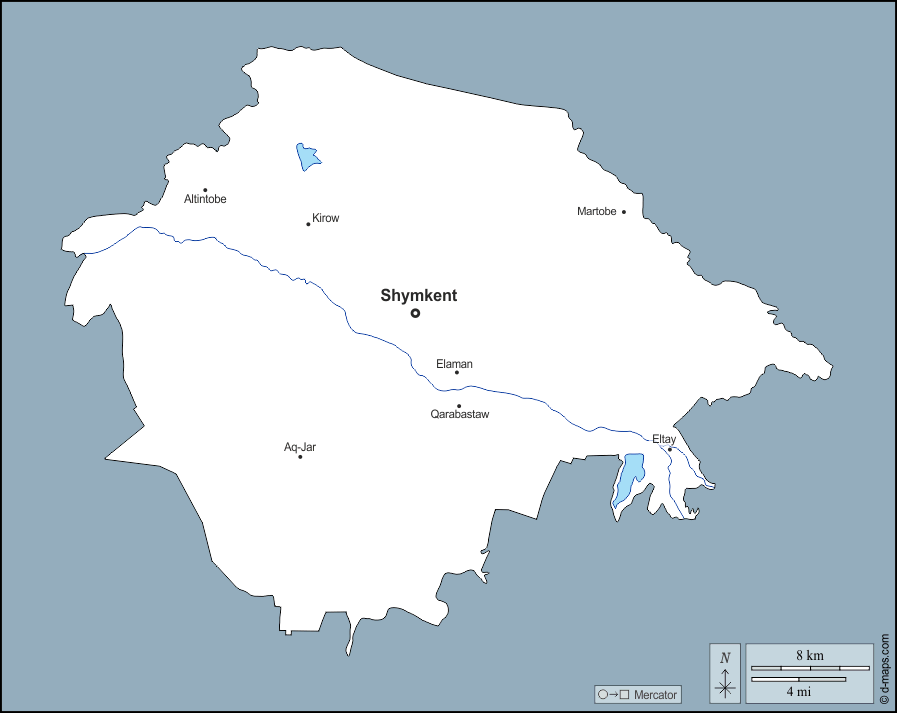 d-maps > Ásia > Cazaquistão > Shymkent > contornos, hidrografia, principais cidades, nomes