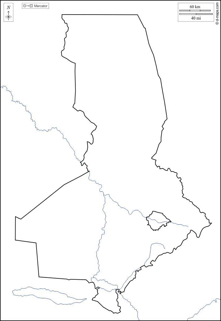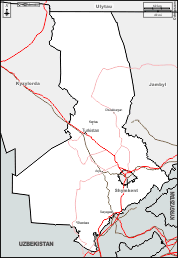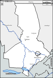 d-maps > Ásia > Cazaquistão > Região do Turquestão > costas, limites, hidrografia, branco