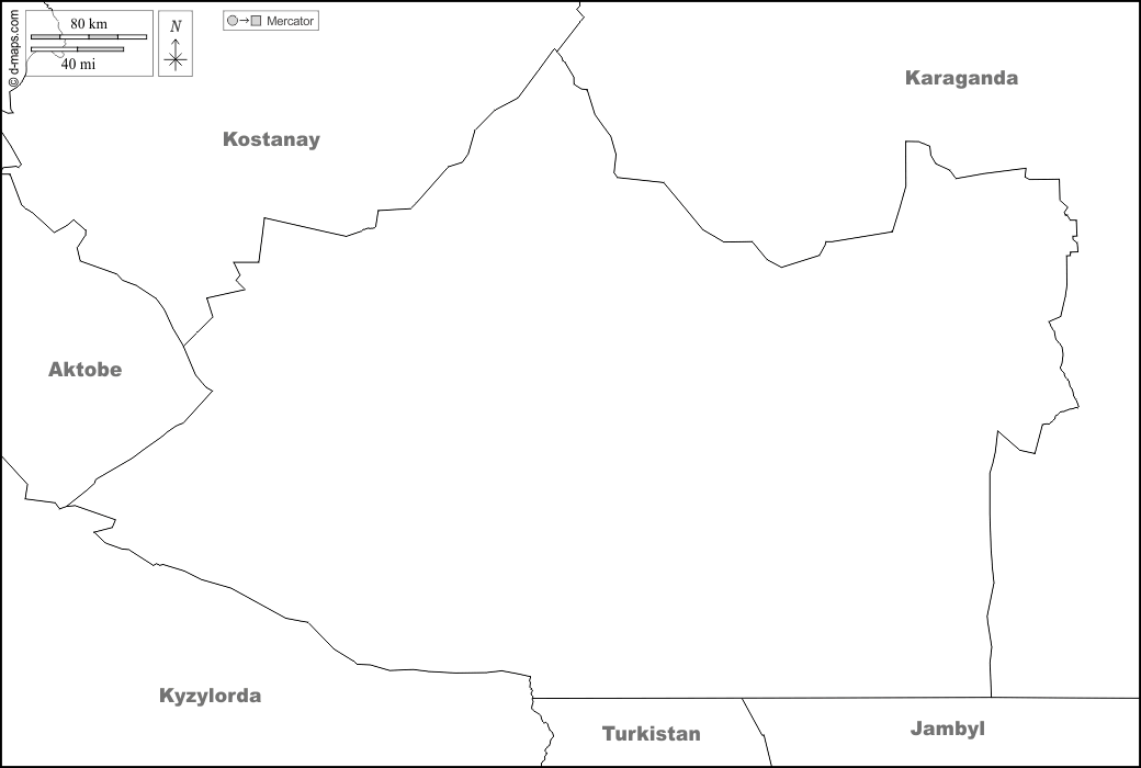 d-maps > Ásia > Cazaquistão > Região de Ulytau > fronteiras, nomes, branco