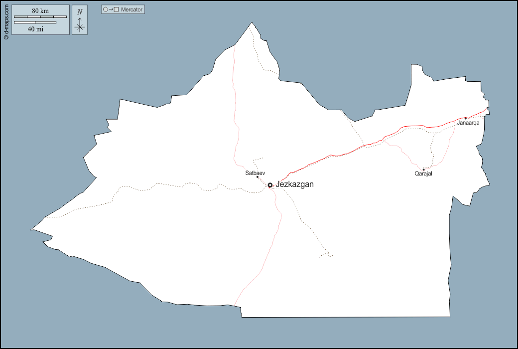 d-maps > Ásia > Cazaquistão > Região de Ulytau > contornos, principais cidades, estradas, nomes
