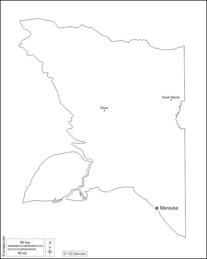 d-maps > Ásia > Indonésia > Papua Meridional > contornos, principais cidades, nomes, branco