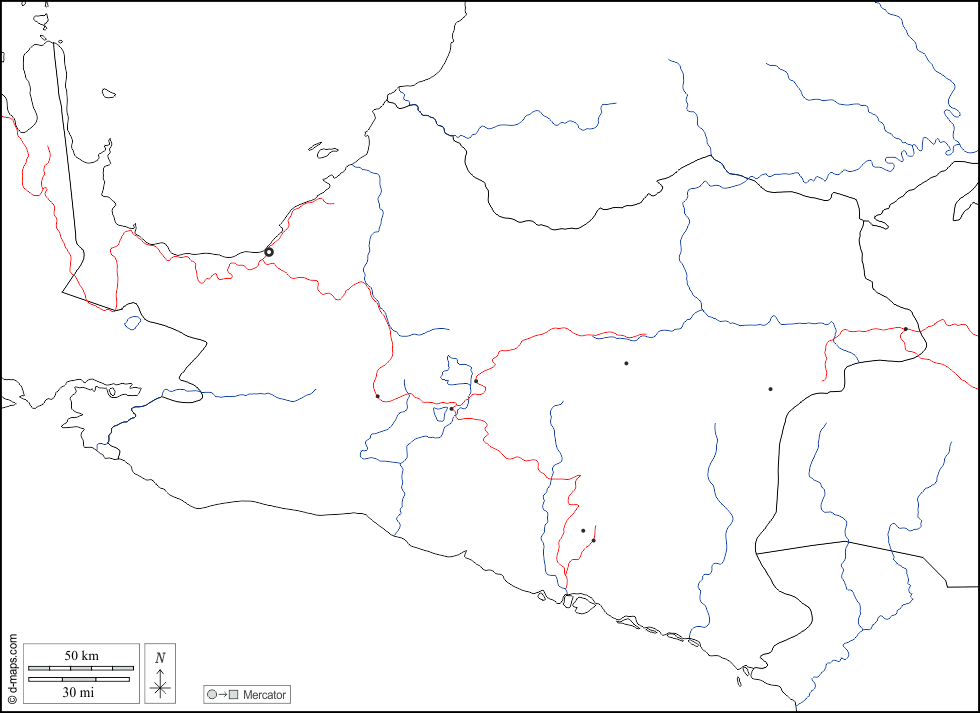 d-maps > Ásia > Indonésia > Papua Central > fronteiras, hidrografia, principais cidades, estradas, branco
