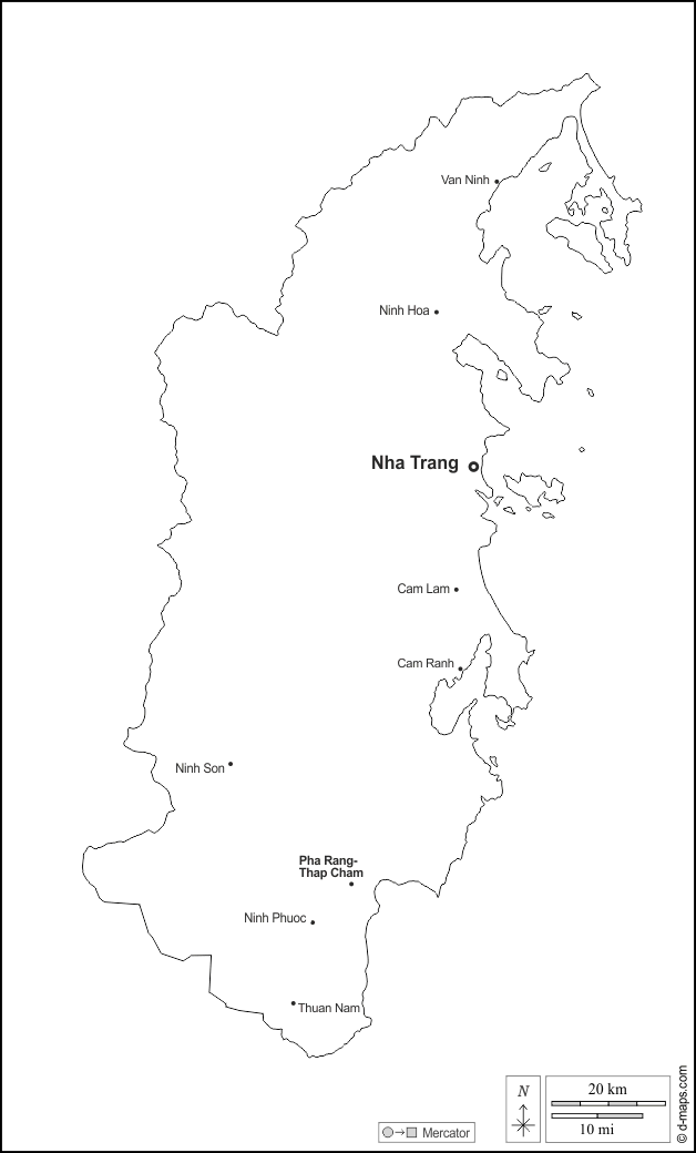 d-maps > Ásia > Vietnã > Província de Khanh Hoa > contornos, principais cidades, nomes, branco