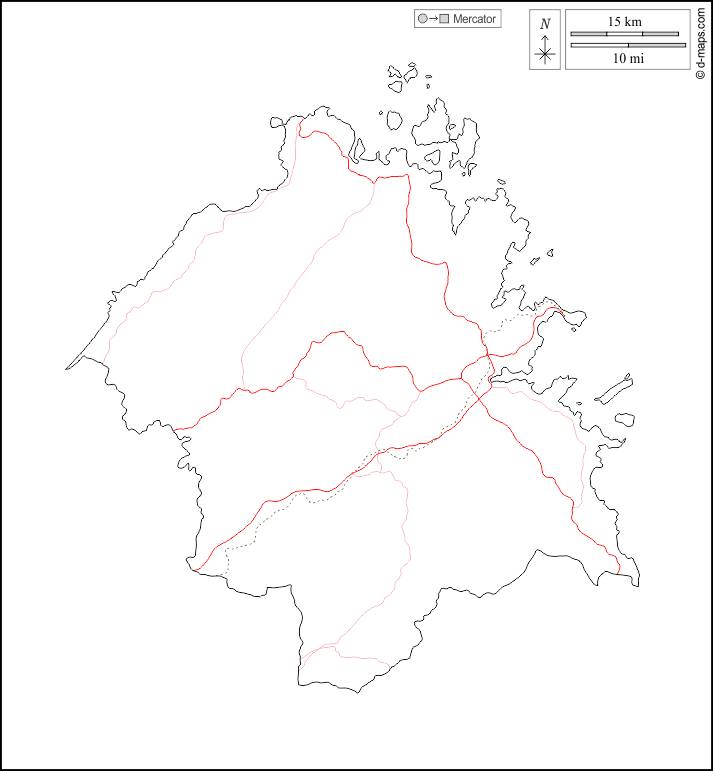 d-maps > Europa > Itália > Província de Gallura, nordeste da Sardenha > contornos, estradas, branco