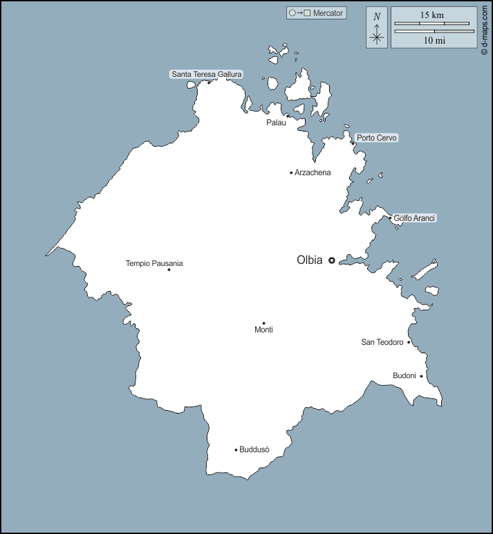 d-maps > Europa > Itália > Província de Gallura, nordeste da Sardenha > contornos, principais cidades, nomes