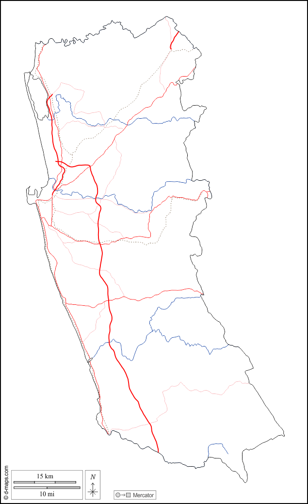 d-maps > Азия > Шри-Ланка > Западная провинция > контур, гидрографии, дорог, Белый