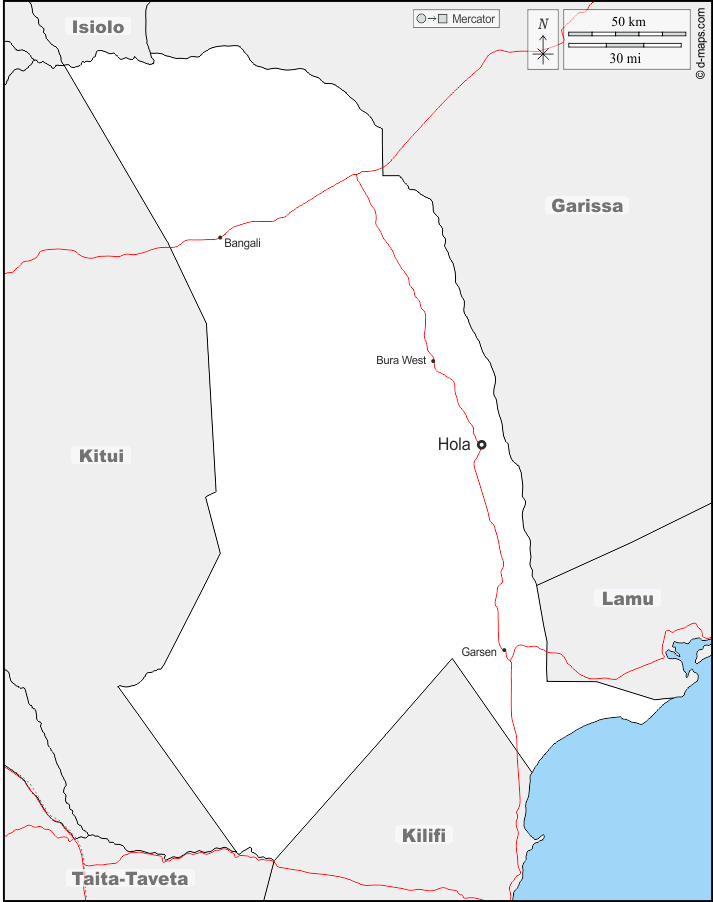 d-maps > Африка > Кения > Округ Тана-Ривер > границы, Главные города, дорог, имена