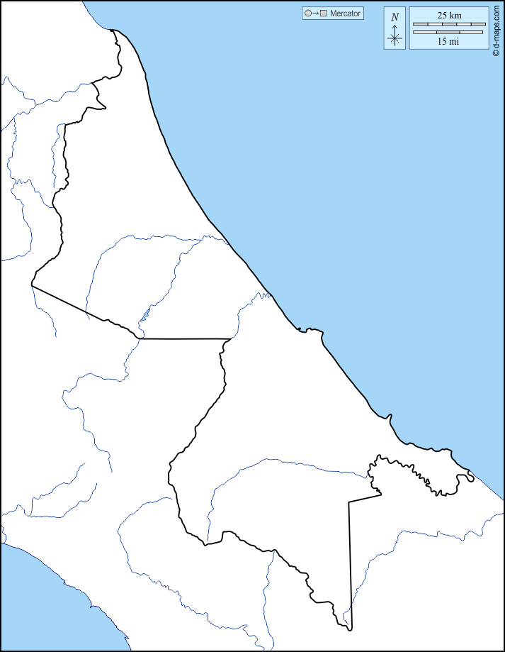 d-maps > Америка > Коста-Рика > Провинция Лимон > побережья, границы, гидрографии