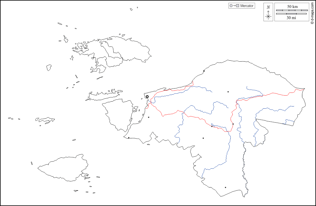 d-maps > Азия > Индонезия > Юго-Западное Папуа > контур, гидрографии, Главные города, дорог, Белый