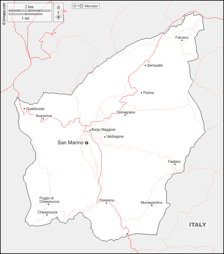 d-maps > Европа > Сан-Марино > границы, Главные города, дорог, имена
