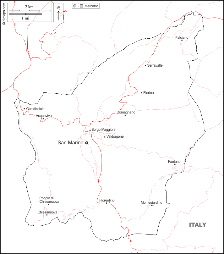 d-maps > Европа > Сан-Марино > границы, Главные города, дорог, имена, Белый