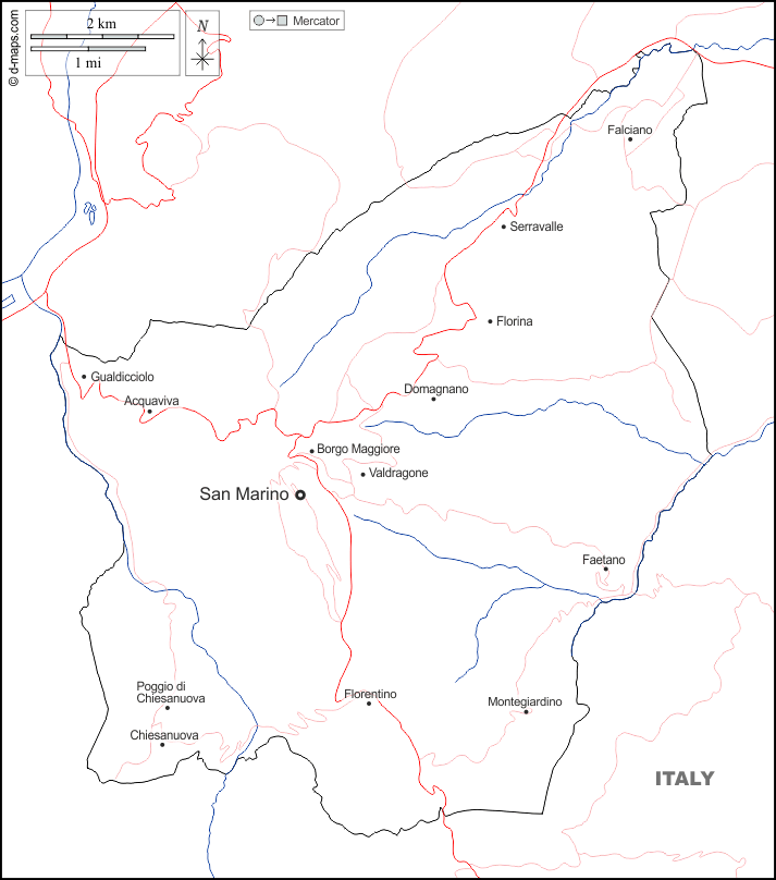 d-maps > Европа > Сан-Марино > границы, гидрографии, Главные города, дорог, имена, Белый