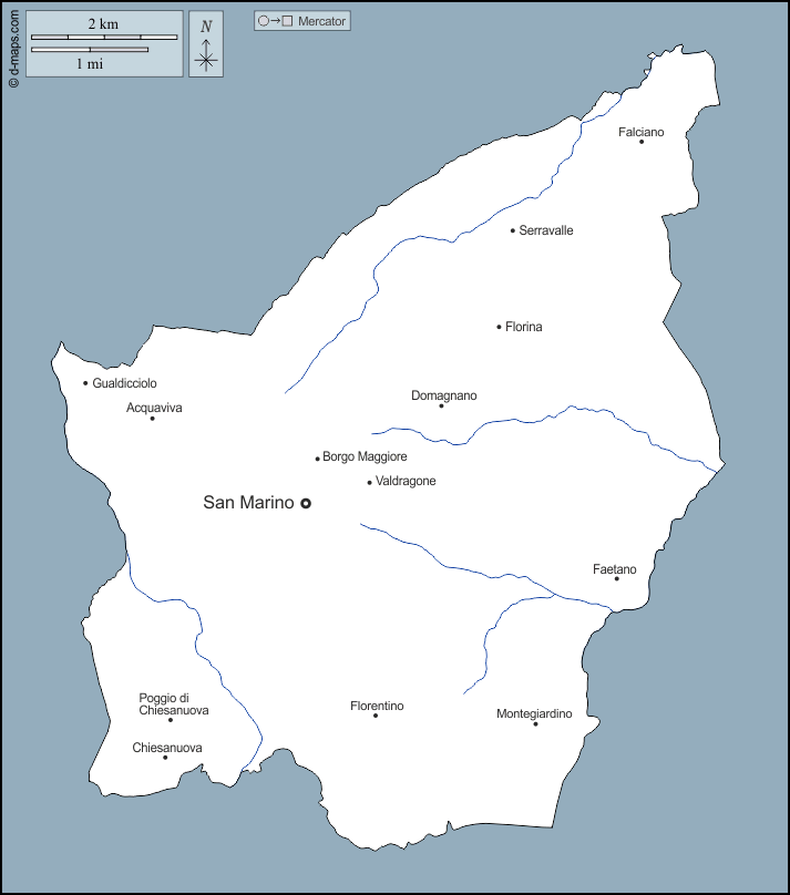 d-maps > Европа > Сан-Марино > контур, гидрографии, Главные города, имена