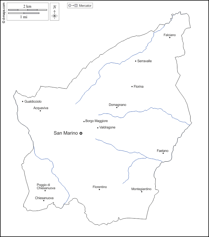 d-maps > Европа > Сан-Марино > контур, гидрографии, Главные города, имена, Белый
